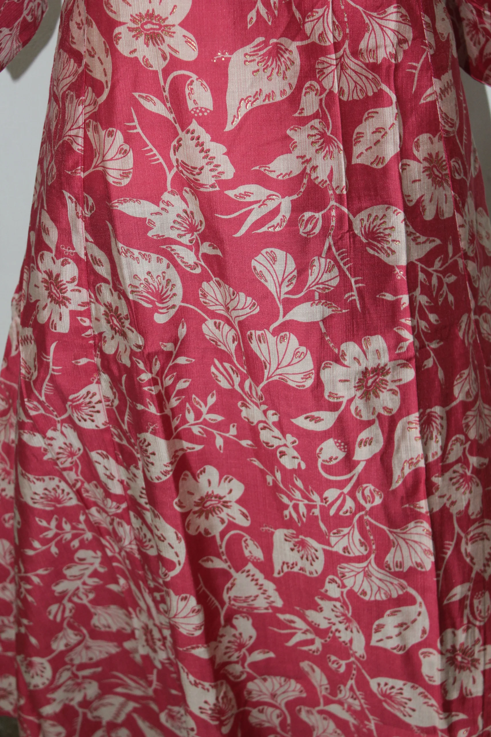 Bright red floral kurti radiating festive charm and elegance.