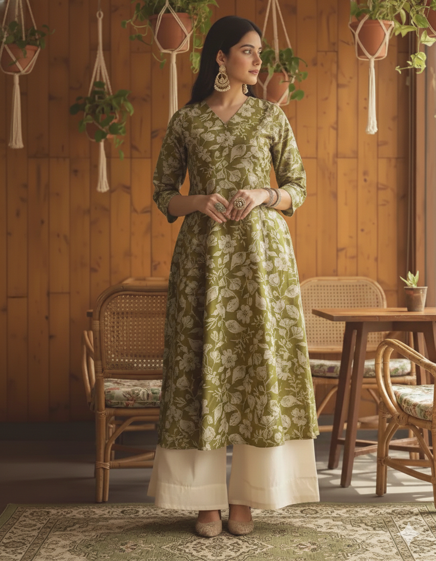 The Deeksha Peacock Green and White Floral Kurti is a perfect blend of grace and comfort, crafted for women who appreciate effortless elegance. Its soothing green hue adorned with subtle floral patterns adds a refreshing charm to your wardrobe. The calf-length silhouette enhances every body type, while the lightweight, breathable fabric ensures comfort from day to night. Whether you’re heading to the office, celebrating a festive occasion, or meeting friends over the weekend, this kurti transitions beautifully across settings. Pair it with white leggings and delicate jewelry for a classic look or experiment with vibrant accessories for a modern touch. Elegant, versatile, and timeless—this kurti captures the essence of everyday sophistication.